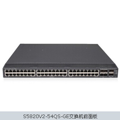 H3C S5820V2-54QS-GE: 48個GE端口,4個1/10G SFP Plus端口+2個QSFP+端口(每個QSFP端口可拆分為4個萬兆端口),兩個電源插槽,兩個風(fēng)扇插槽